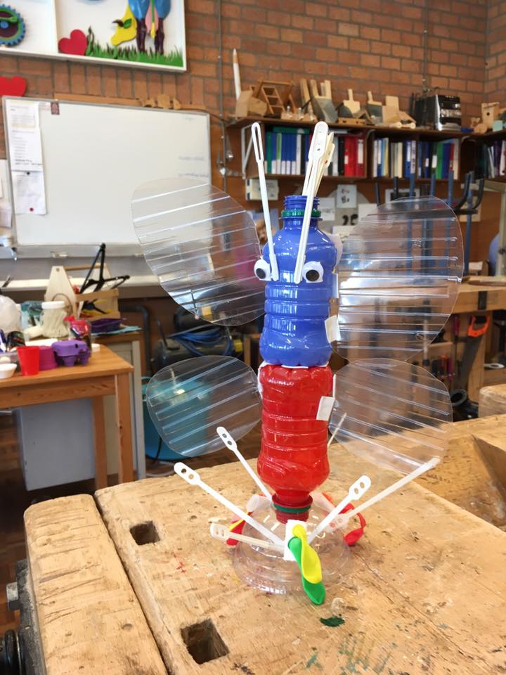 Op straat ligt een schat aan grondstoffen. Zwerfafval dat op straat ligt, wordt door mij geraapt en gewassen en zijn de grondstoffen voor kunstwerken en knutsels. De kinderen laten zich inspireren door de verscheidene vormen afval en materiaal. Hierdoor wordt de 'plastic soup' kleiner en de fantasie groter.