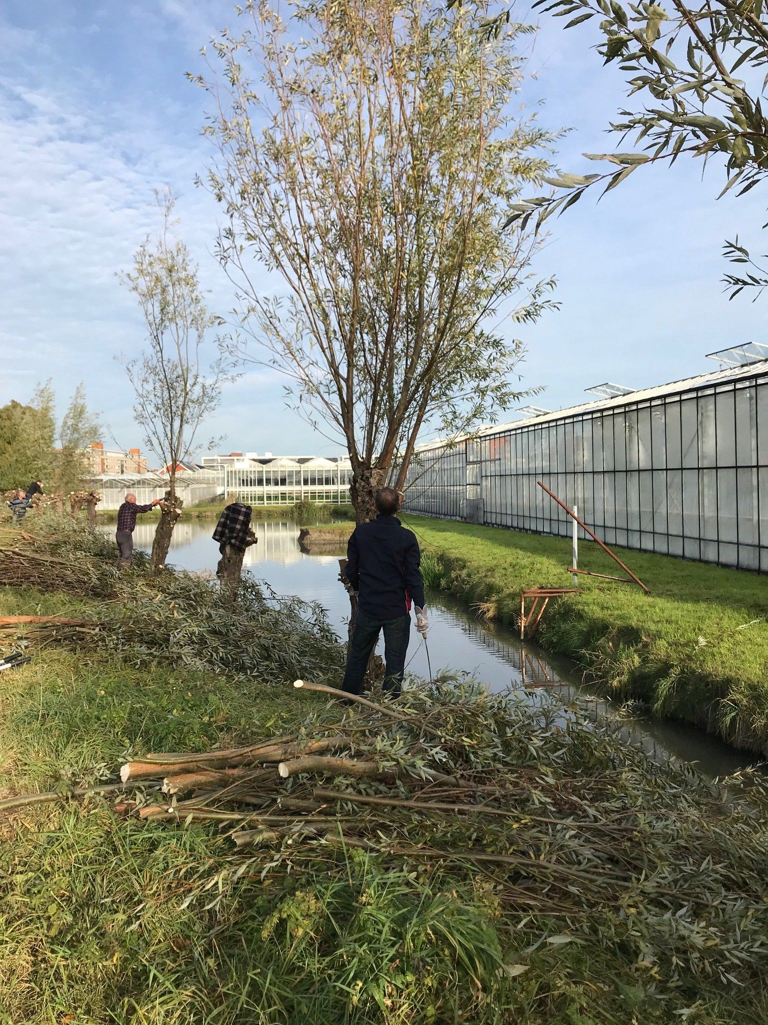 Vanaf november tot maart is er een samenwerking met natuurvereniging Natuurlijk Delfland. In de wintermaanden knotten hun vrijwilligers de wilgen. Deze knotwilgen zijn tegenwoordig vooral van landschappelijke en ecologische waarde van belang. Een knotwilg dient als woonplek voor allerlei planten, paddenstoelen, korstmossen, dieren en insecten. Sommige soorten zijn vooral te vinden in de knotbomen waardoor de knotwilg een goede bijdrage doet in de biodiversiteit. Samen met andere vrijwilligers ruimen we het zwerfafval op wat in de buurt van de knotwilgen ligt. De oranje keet is van de Gemeente Westland en van hieruit wordt tijdens de pauze koffie en thee geschonken. Via mijn facebookpagina kun je zien welke data we aan de slag gaan. Vanwege het nieuwe project Het groene strand wat Natuurlijk Delfland in beheer heeft ben ik minder aanwezig bij de knotters en meer betrokken bij de schoonmaakacties bij de Zandmotor.